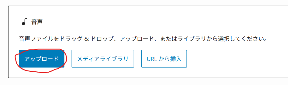 投稿の「+」ボタンから「音声」を探し、クリックして呼び出しましょう。