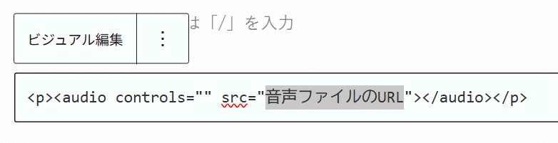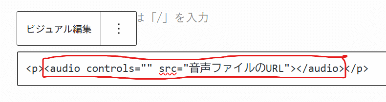 「音声ファイルのURL」と書かれている部分と差し替えましょう。