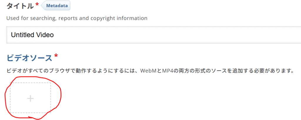 タイトルを適当に記入し、ビデオソースの下の「+」をクリックします。