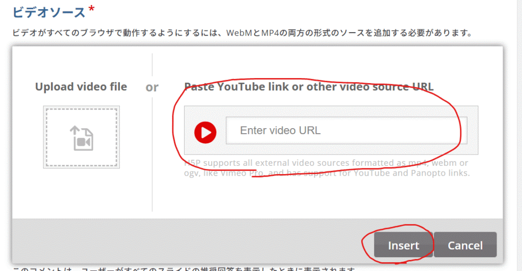 右側のURL貼り付け欄に希望のYouTube動画URLを貼り付け、「Insert」をクリックします。