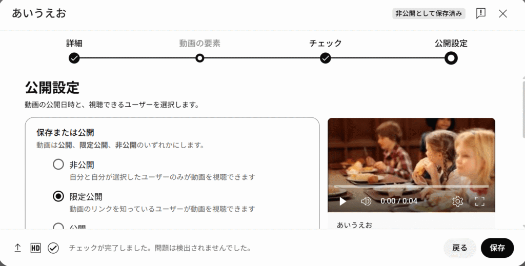 公開設定で「限定公開」を選択します。