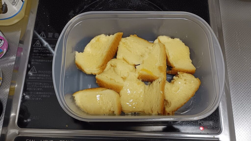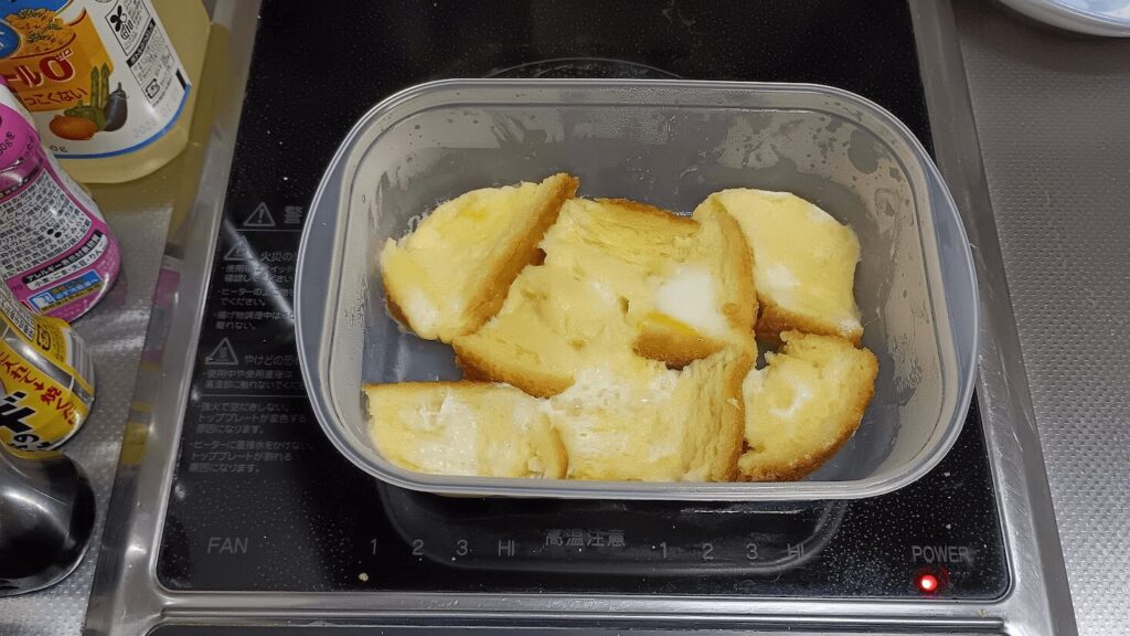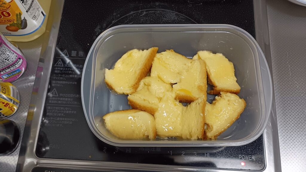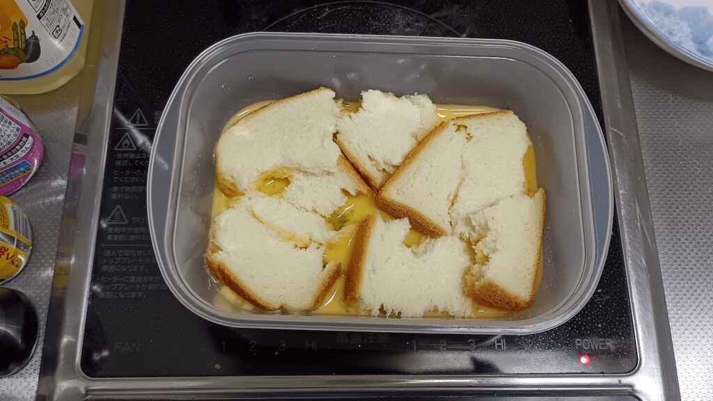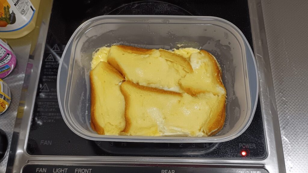 もっと時短したいという場合は、パンをレンジで30秒ほどチンしてから卵液に浸すと、パンの水分が飛んで卵液を吸い込みやすくなるみたいです。
