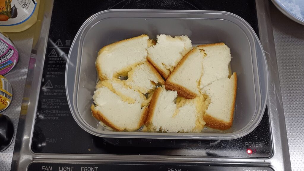 2. 食パンをちぎって浸す