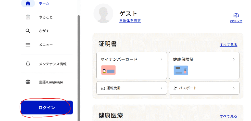 まずは、パソコンでマイナポータルの公式サイトにアクセスします。
