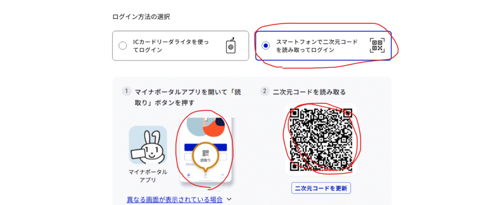ログイン方法は、「スマートフォンで二次元コードを読み取ってログイン」を選択します。