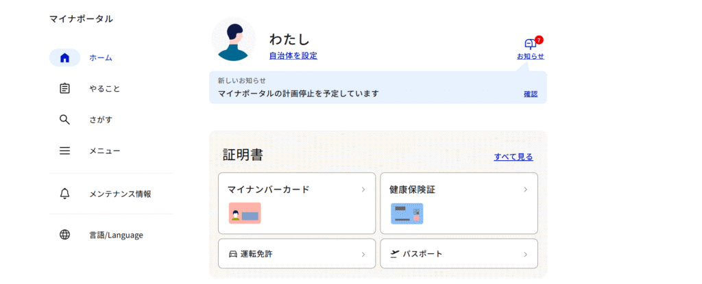 つまり、行政手続きの検索・オンライン申請や個人情報の確認が行える国民専用のポータルサイトのことですね。