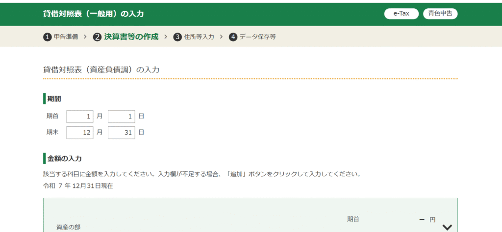 続いて、貸借対照表を記入してきます。