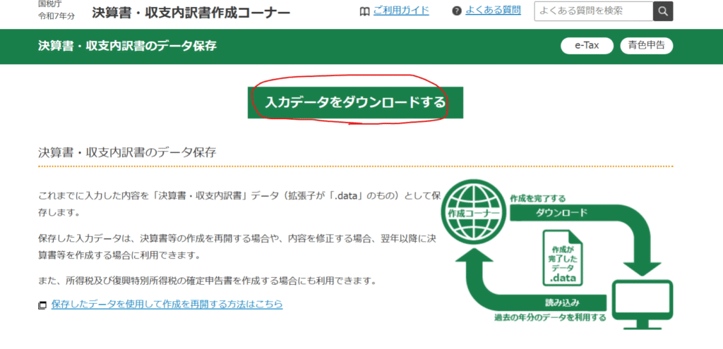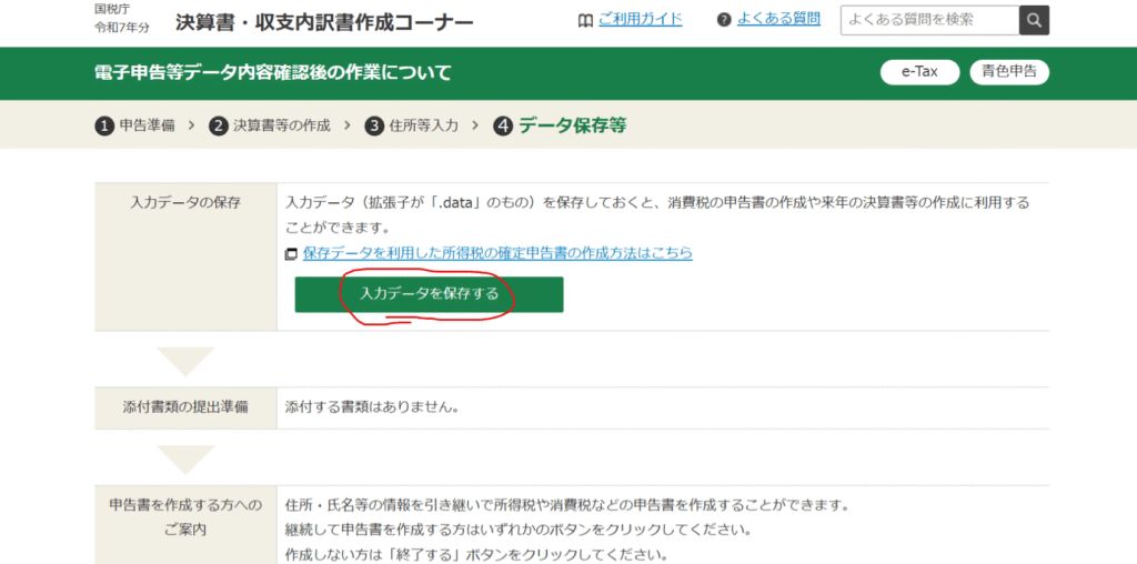 「入力データを保存する」というボタンがあるのでクリックします。