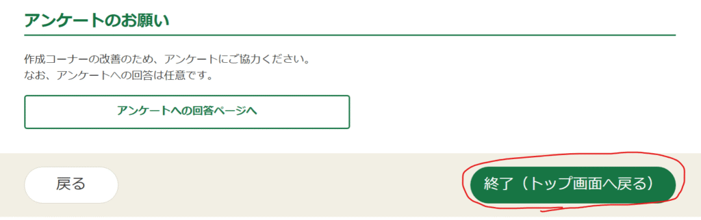該当する項目がなければ、「終了(トップ画面へ戻る)」をクリックしましょう。