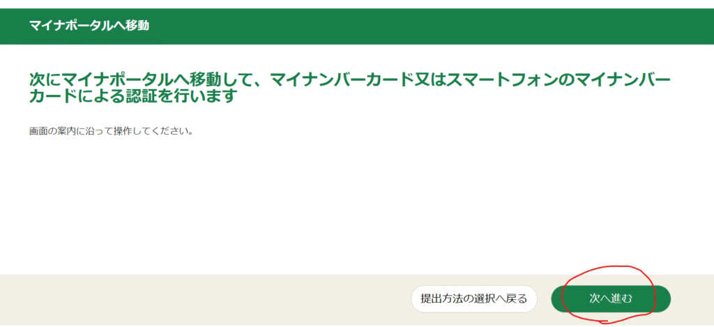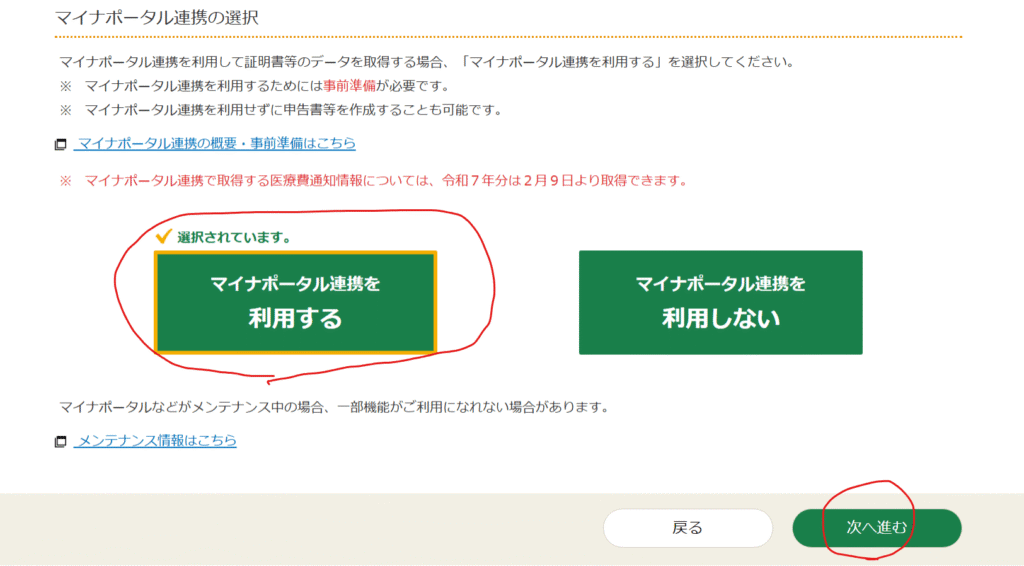 続いて、マイナポータル連携についての画面が表示されます。