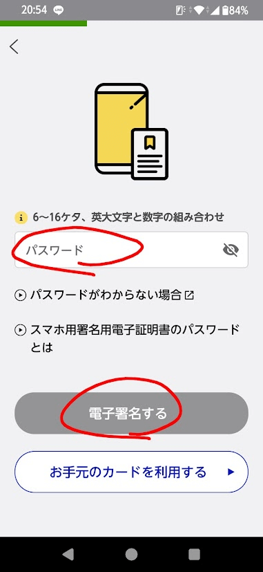 マイナアプリでマイナンバーカードのパスワードを入力し、本人確認を完了させましょう。