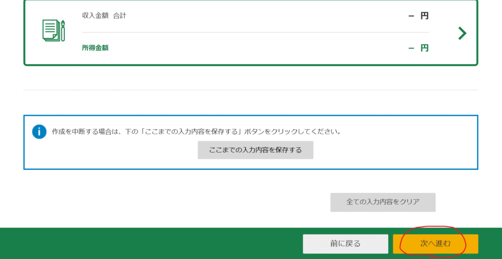 所得金額の確認画面が表示されるので、確認を済ませたら「次へ進む」をクリックします。
