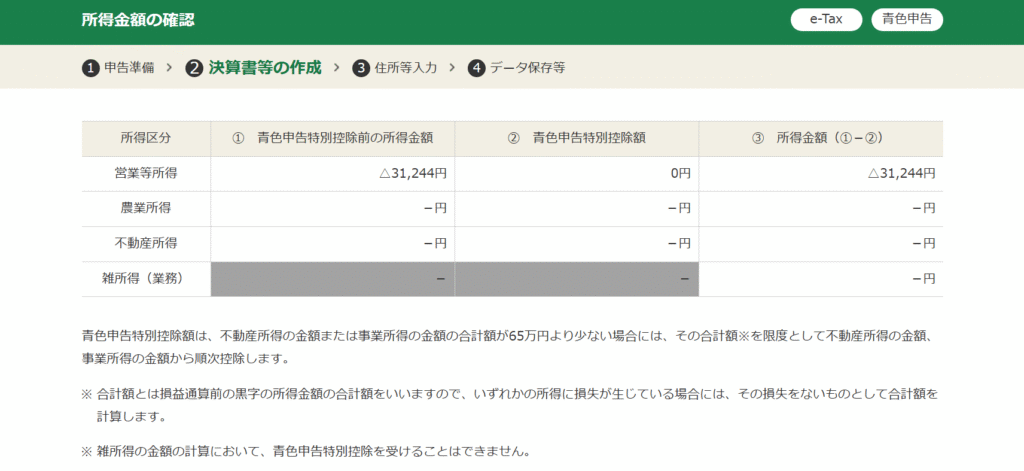 僕は事業利益0円、経費が約3万円だったので、上画像のようになりました。