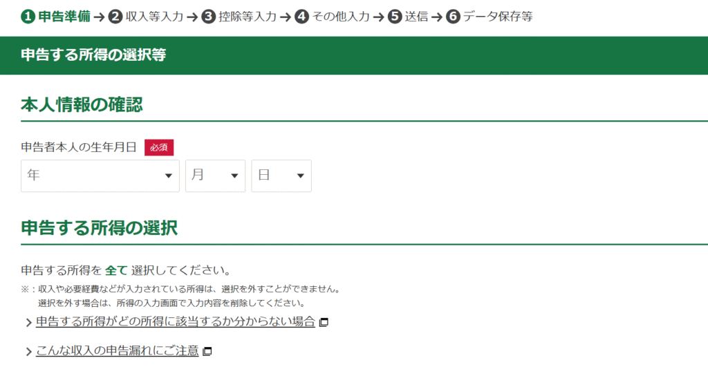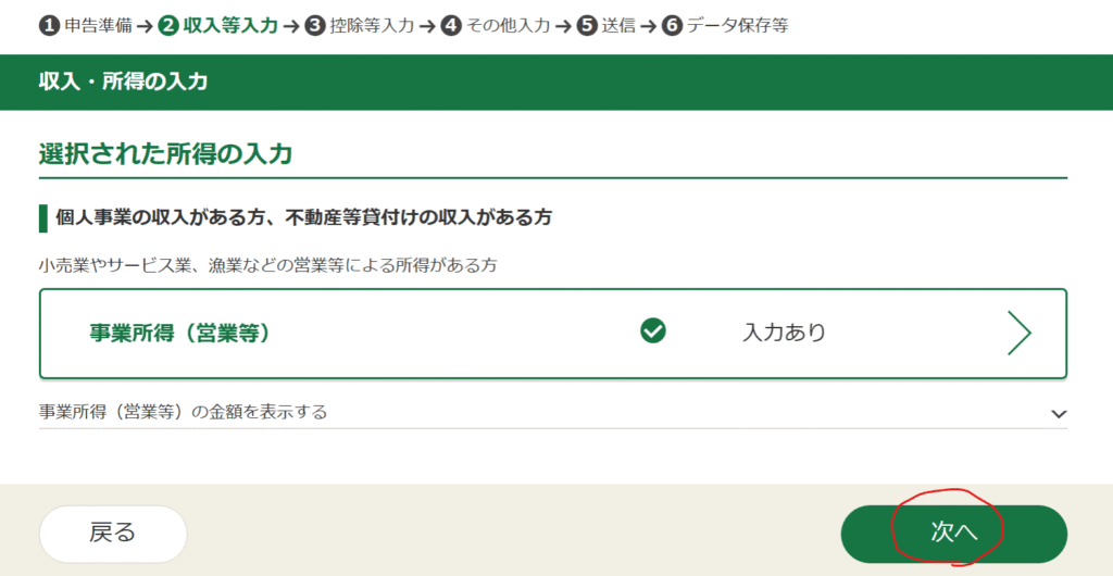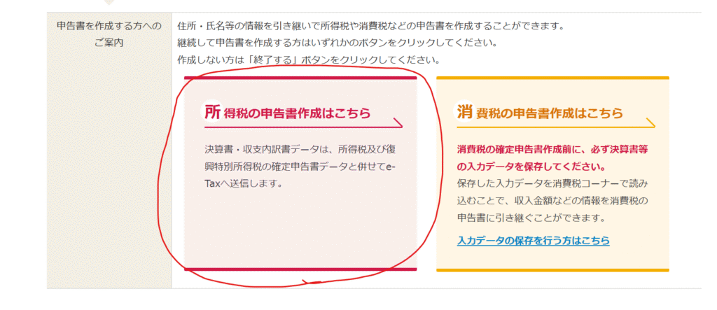 続いて、所得税の申告書の作成を行っていきます。