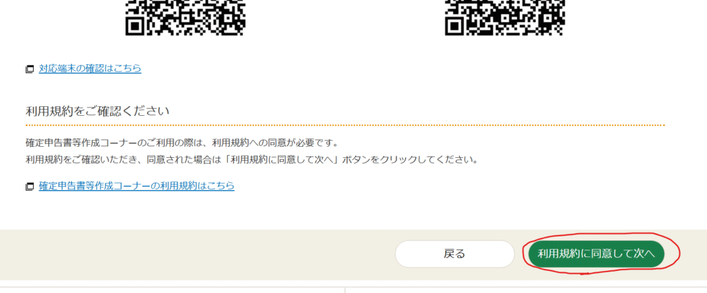 画面の内容を確認し、「利用規約に同意して次へ」をクリックします。