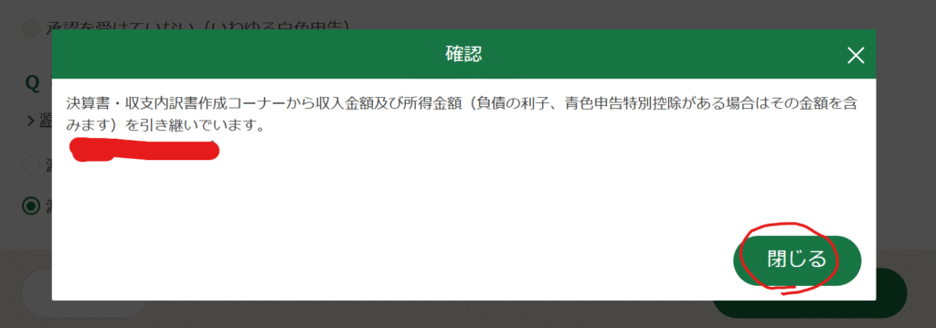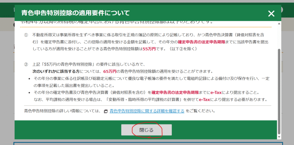 次の画面へ進んだ時、上のように表示されたら一読して「閉じる」をクリックしましょう。