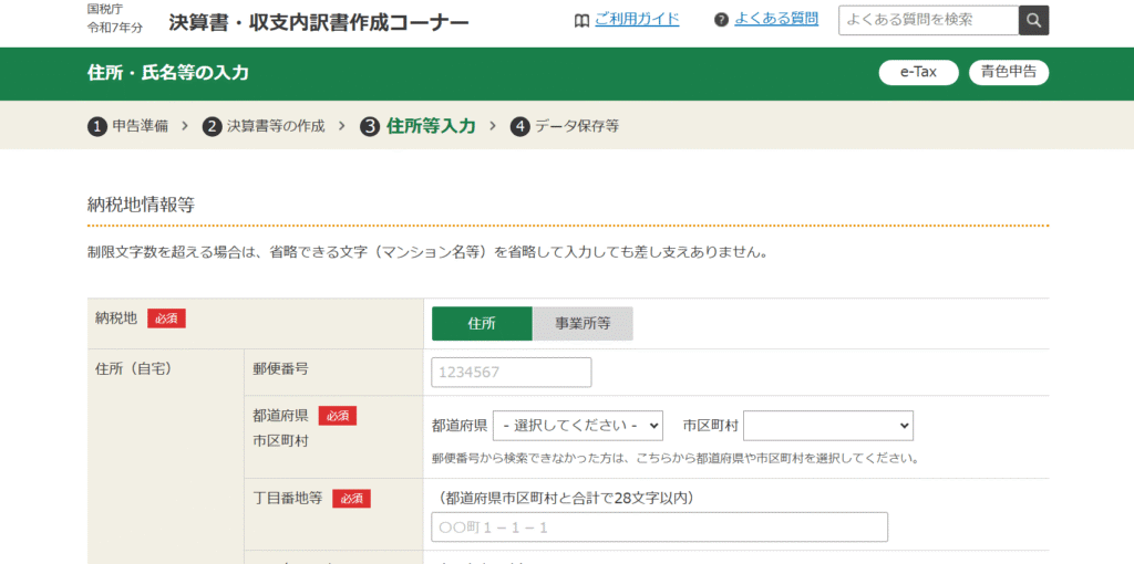 納税地情報等は、ほとんどの場合ご自身の住所になります。