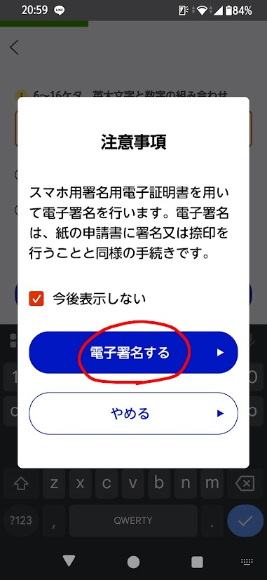 注意事項を確認し、「電子署名する」をタップします。