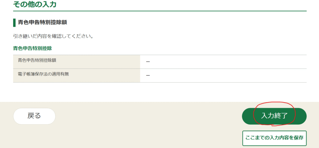 画面内容を確認して「入力終了」をクリックします。