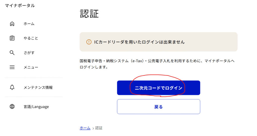 「二次元コードでログイン」をクリックします。