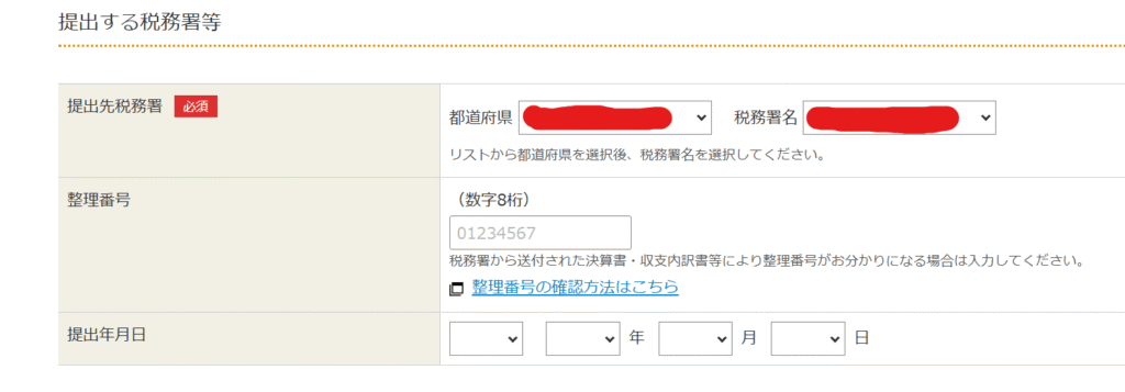 税務署等の情報について、整理番号は分かれば記入しましょう。