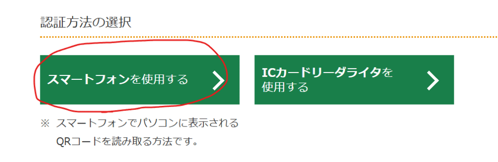 認証方法の選択では、「スマートフォンを使用する」をクリックします。