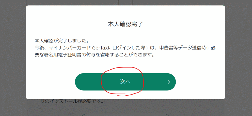 続いて、e-Taxを利用するための本人確認を行います。