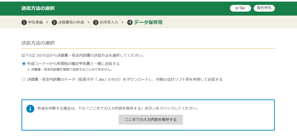 作成を中断する場合は、「ここまでの入力内容を保存する」をクリックすると安心です。
