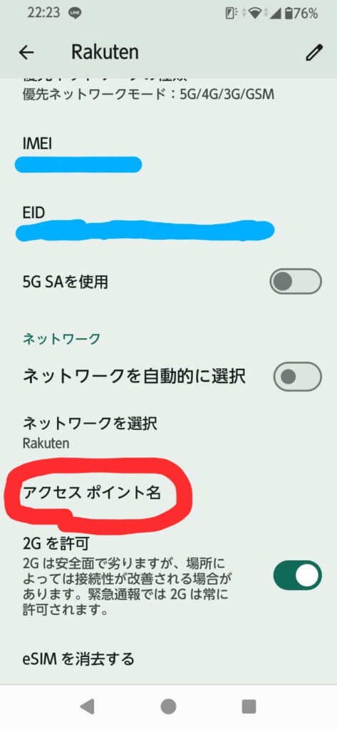 なので、その設定をオフにして、ネットワーク「Rakuten」を手動で選択すると解決するかもしれません。