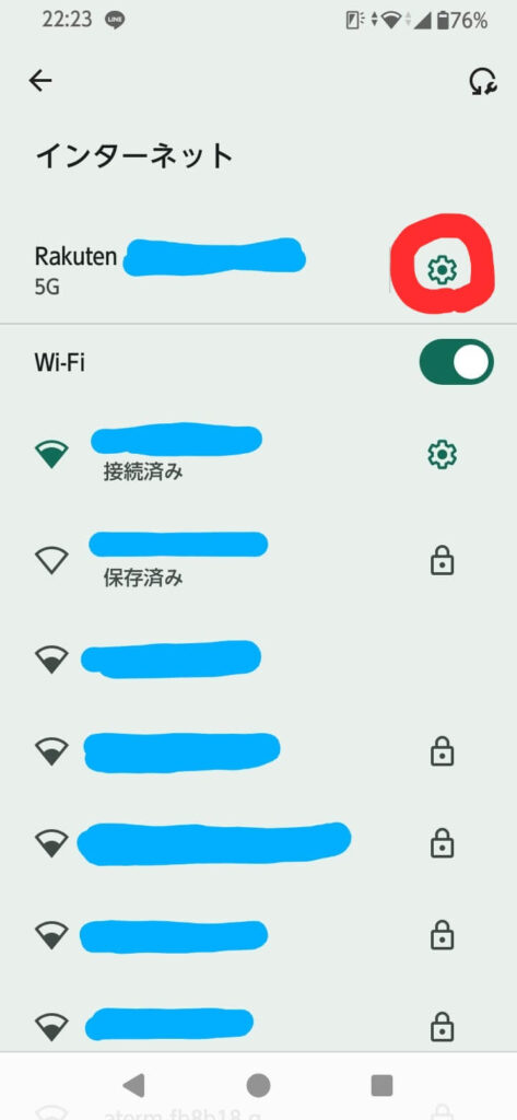 表示された「Rakuten – 〇〇」の右横の歯車マークをタップします。