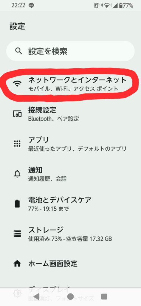 まずは設定から「ネットワークとインターネット」を選択します。
