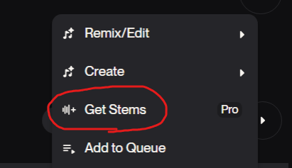 メニューの中から「Get Stems」を選択してクリックします。