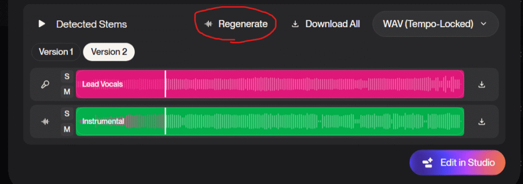 ちなみに、「Regenerate」というのは、「楽曲のステム(個別のパート)を再生成する機能」になります。