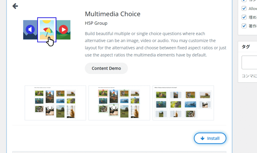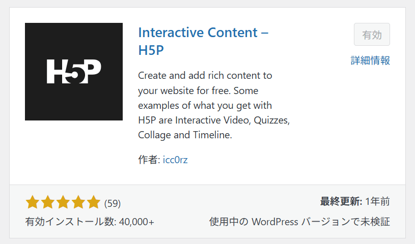 今回の主役となるプラグインは「Interactive Content – H5P」というものです。