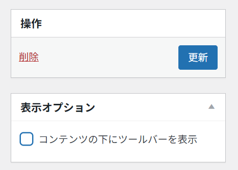 「コンテンツの下にツールバーを表示」からチェックを外し、「更新」をクリックします。