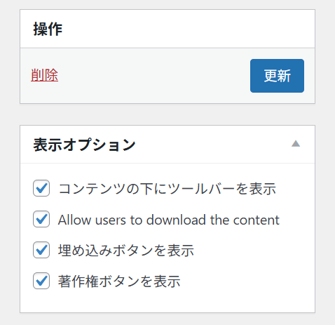 コンテンツの編集画面で、上のような表示オプション設定ができます。